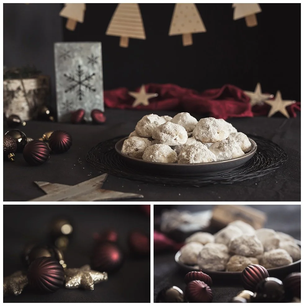 I wanted to photograph them in a festive manner, so I added a few mini ornaments, some small packages, a snowflake lantern, and some really cute tree garland in the background. Once I had all the elements gathered, I began shooting from different angles and rearranged the items as I went along. I love how the cookies and trees compliment each other.