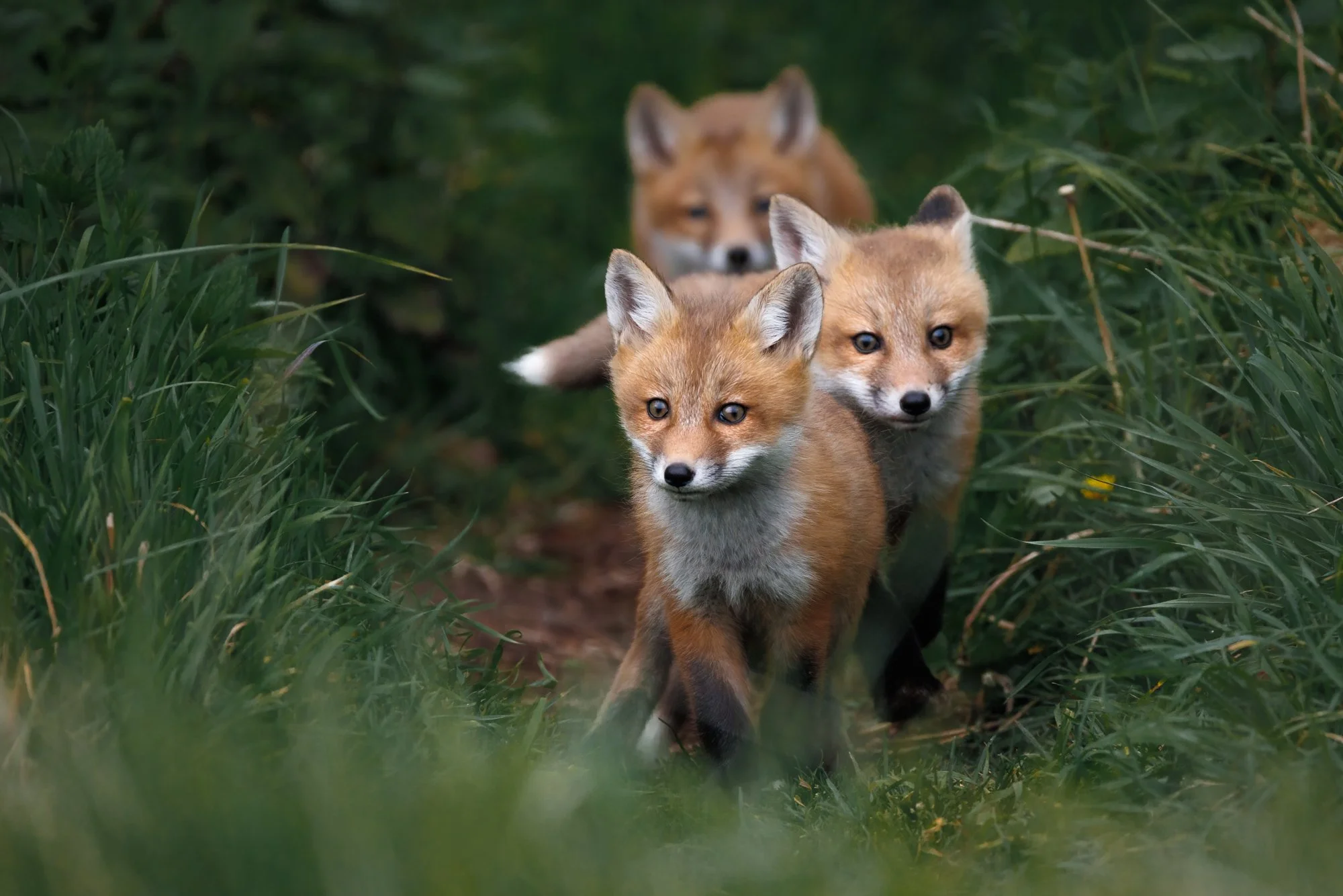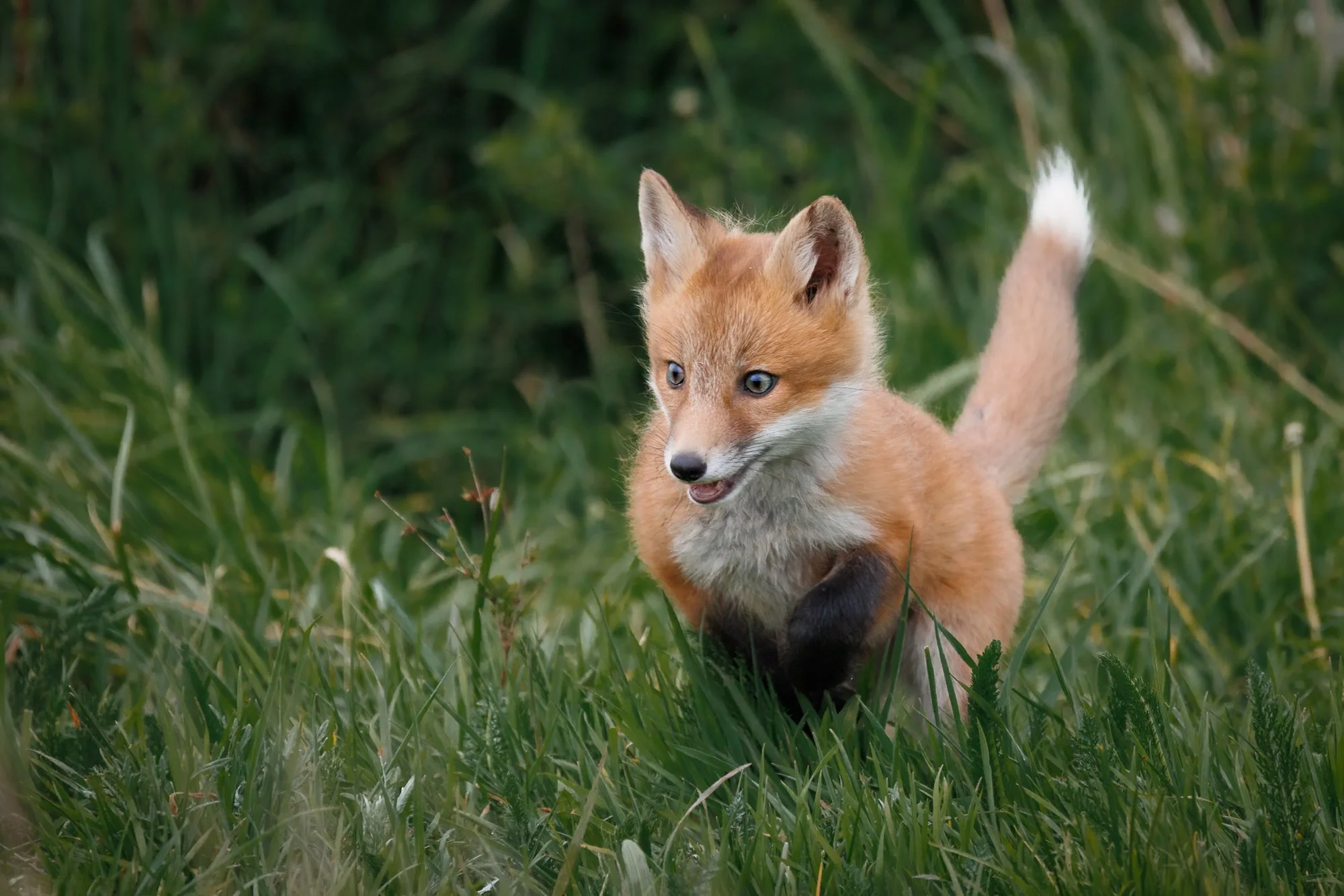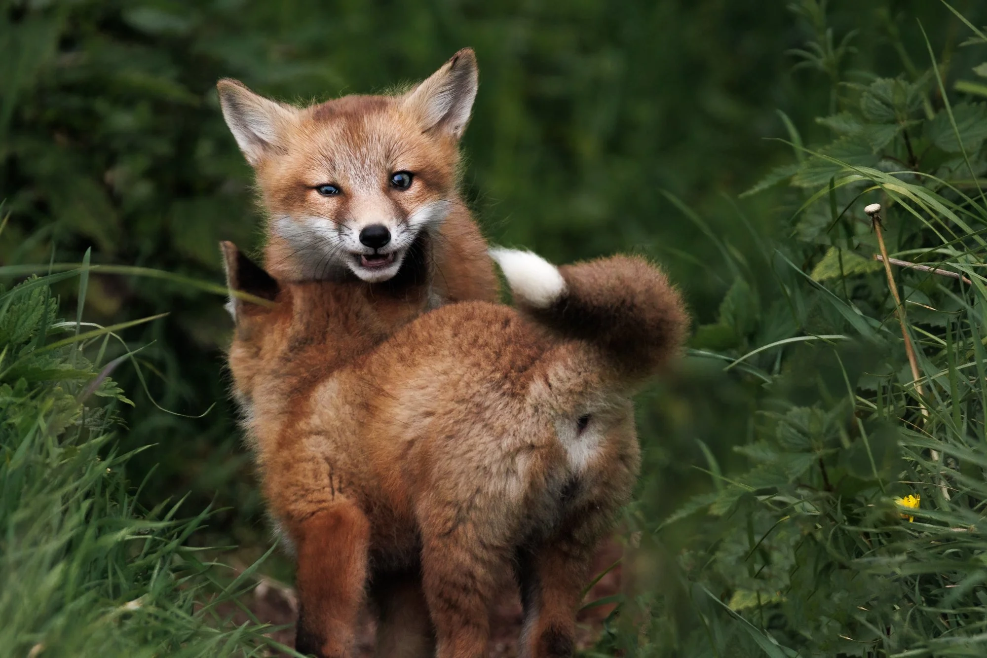We observed adult foxes, adolescents, and kits grooming, hunting and playing. The little kits were so entertaining to watch. Their energy seemed boundless as they chased and spared. At first I likened them to kittens, then puppies, as they entertained us with their antics. Although, I believe this behavior is training for their coming independence.