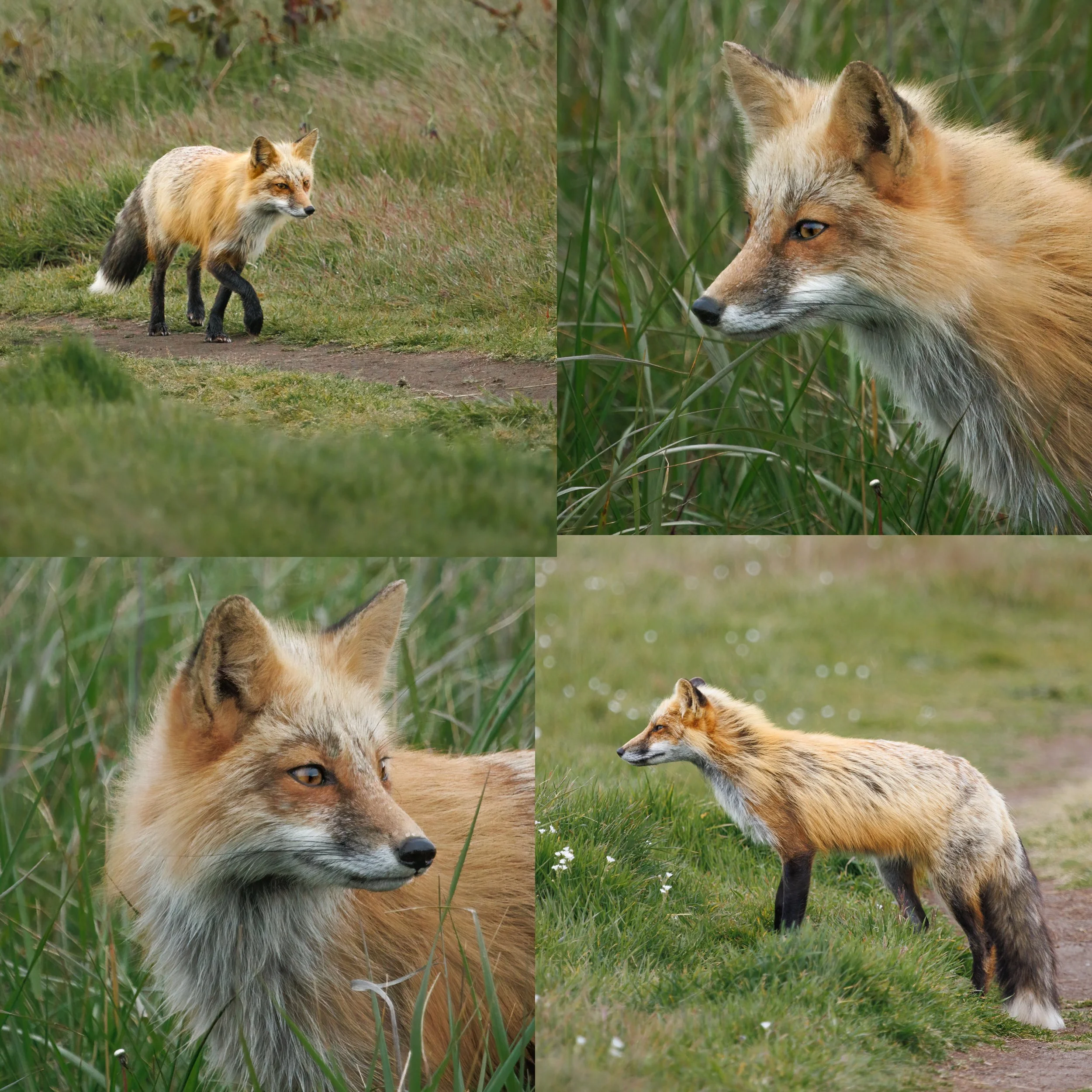The morning began with an encounter with this red fox thoroughly scanning the meadow for a meal. Red foxes can be orange, silver, gray, black, or multi-colored.