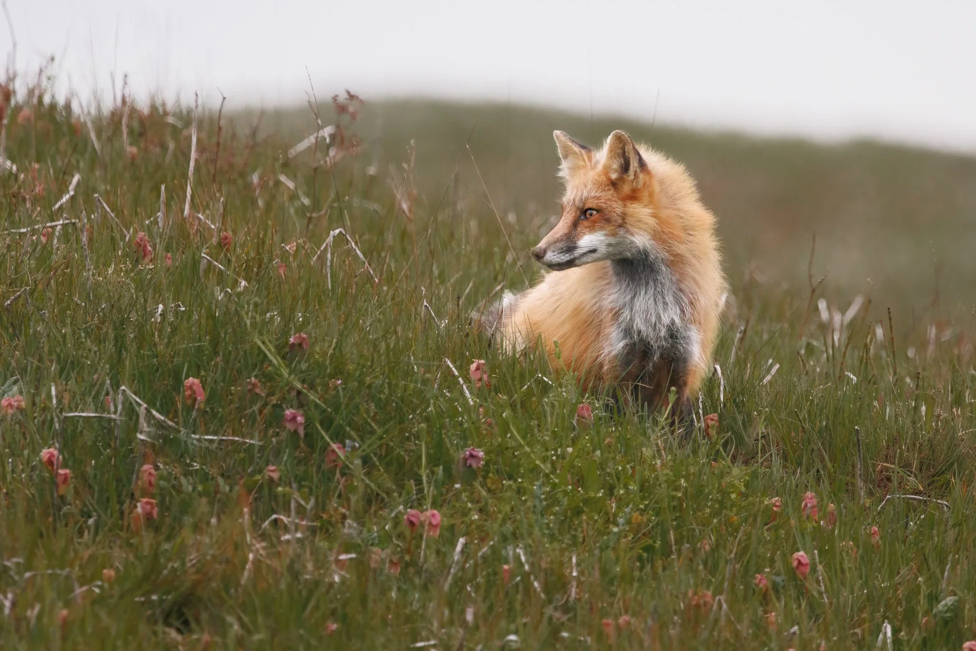 We managed a few sightings and photographs the first afternoon of our arrival. We woke early the following morning and headed toward the area where we thought we’d have the best chance of photographing the foxes. As the sun rose, sure enough, we could see them as they left their dens, ran across a huge meadow, and began their day searching for food. We positioned ourselves within the vehicle, windows down, cameras ready, and waited for the opportune moments to present themselves. We were not disappointed! A vehicle makes a very good ‘blind’.