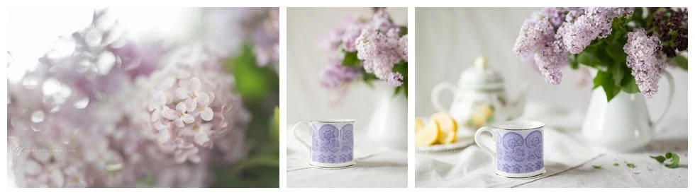 various images of lilac blossoms high key