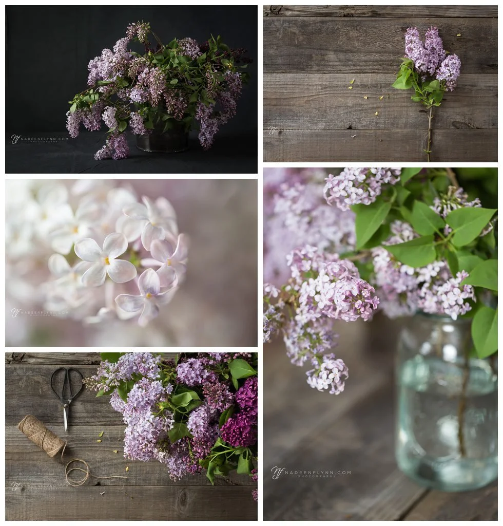 various images of lilac blossoms