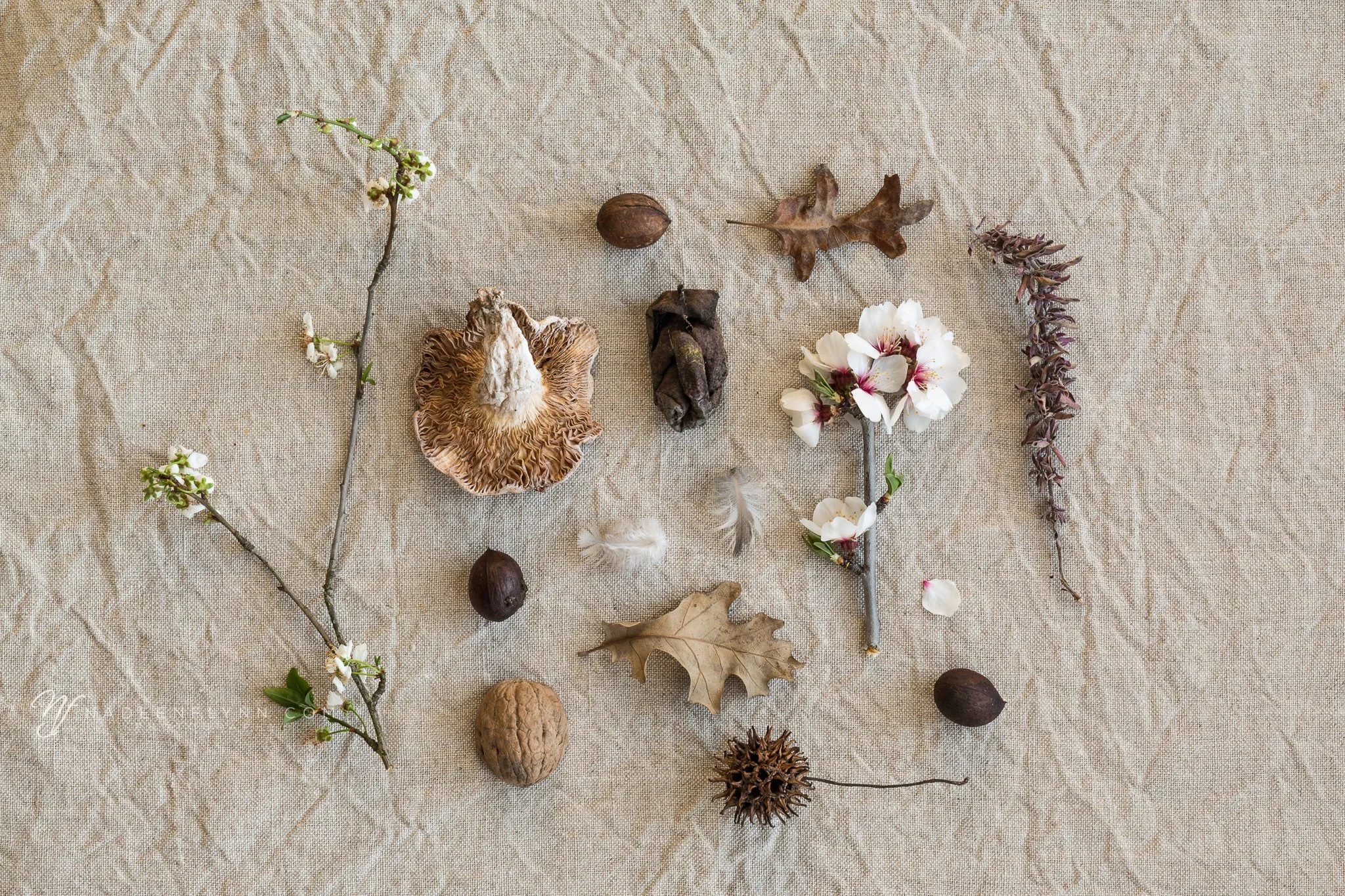While taking a nature walk around our property with my camera the other day, I collected a few bits and pieces of nature. I decided to make a flat lay image from them. It seemed like a base of linen would fit the natural theme of the image. Almond blossoms, pecans and a walnut shell, oak leaves, mushroom, dried oregano, and a leftover walnut husk along with a couple of tiny feathers make my subject. I had hoped to find a large owl feather to include as we've heard the 'Hoot' owls a lot lately. Maybe next time.