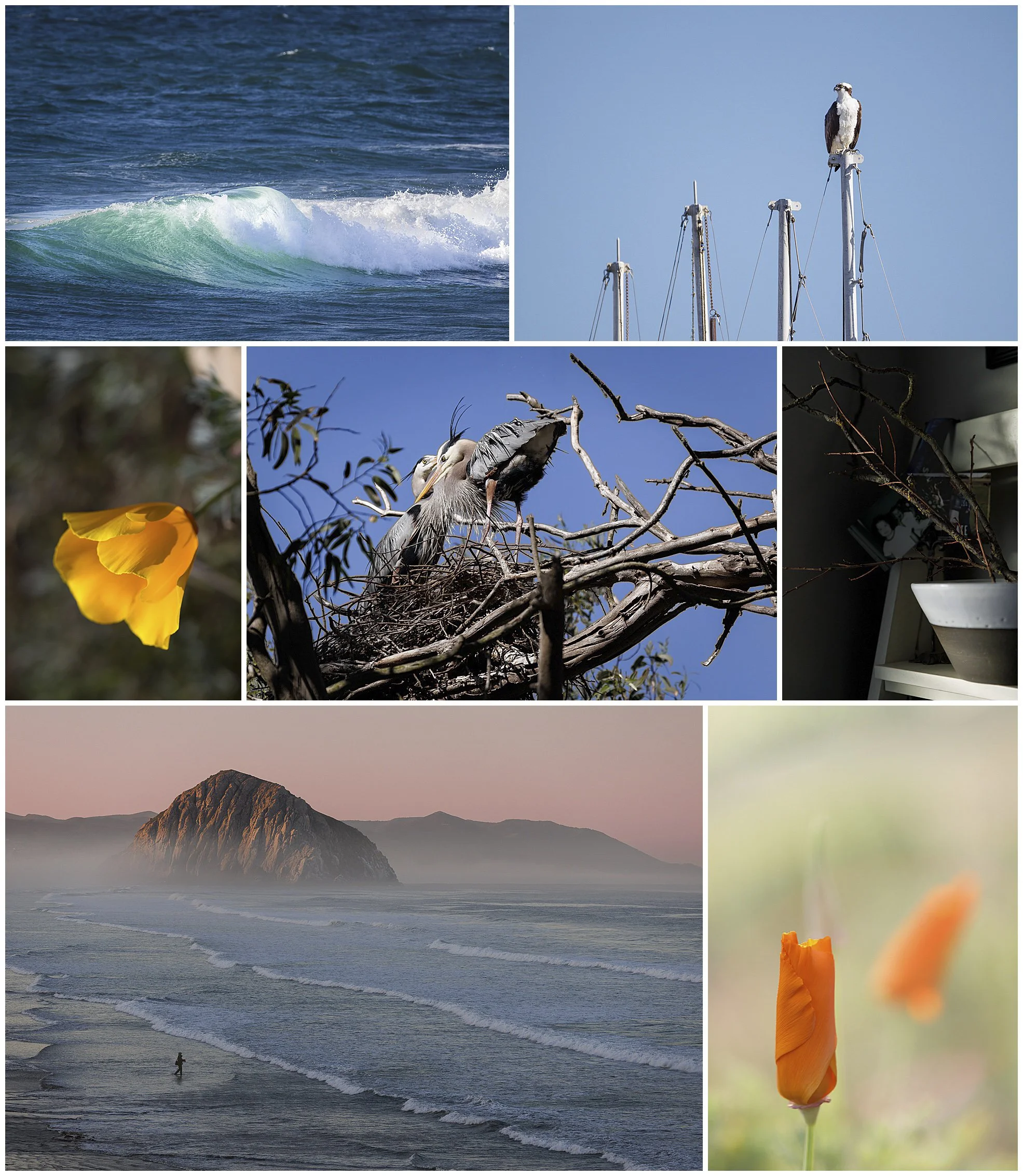 Project 365, Week 11 involved more time at the coast, but that week it was the central coast where the Great Blue Herons were busy nesting and the osprey kept lookout for prey atop a mast in the harbor. The California Poppies were bursting up all over. They always make spring so cheery!