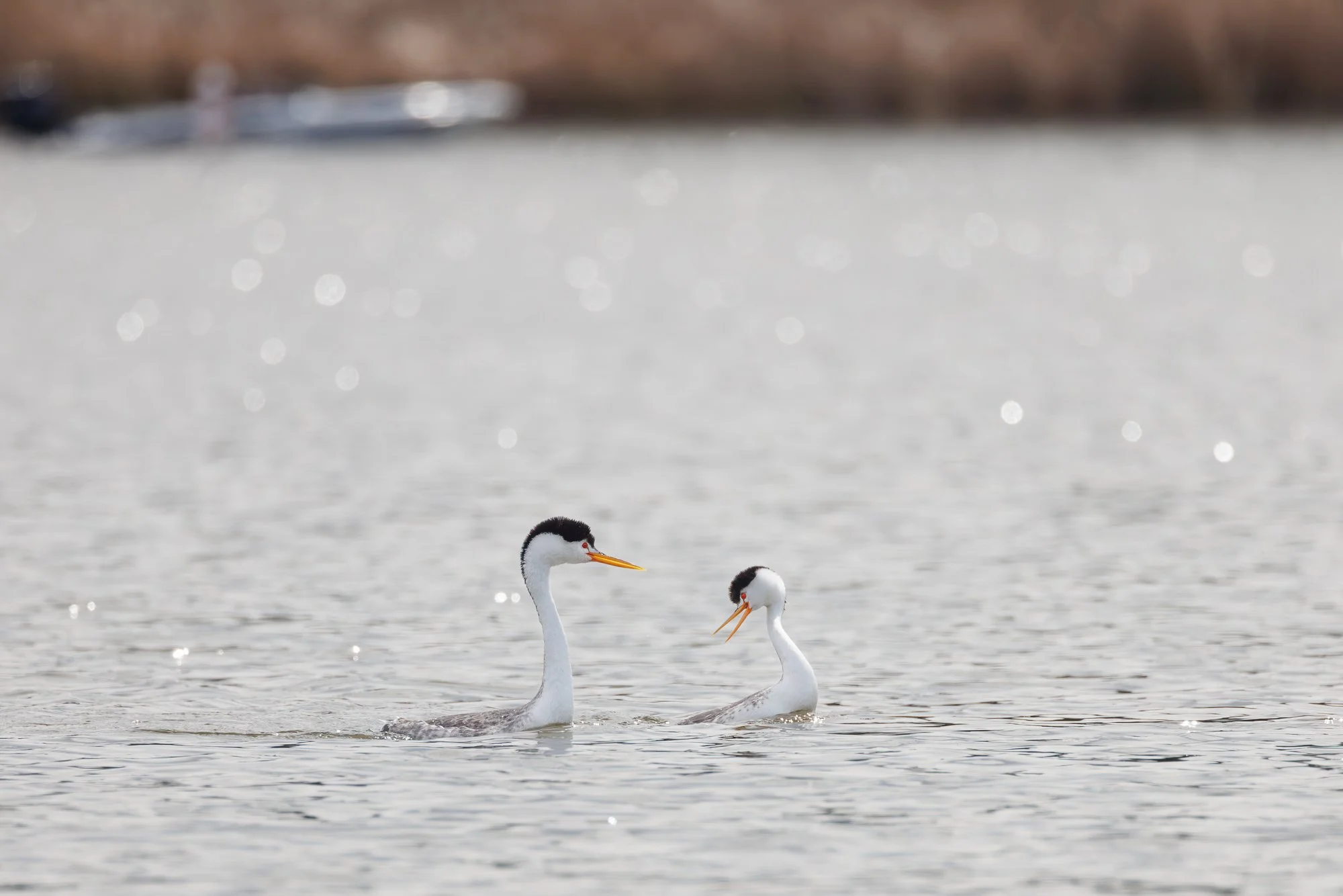 These fascinating water birds are known for their graceful movements on water, unique behaviors, and their courtship rituals that capture the attention of bird enthusiasts worldwide right along with their prospective partners. Western and Clark’s Grebes are expert divers and can stay underwater for extended periods, hunting fish and aquatic insects with precision. They are also known for their elaborate courtship displays, showcasing their dedication to finding a mate.
