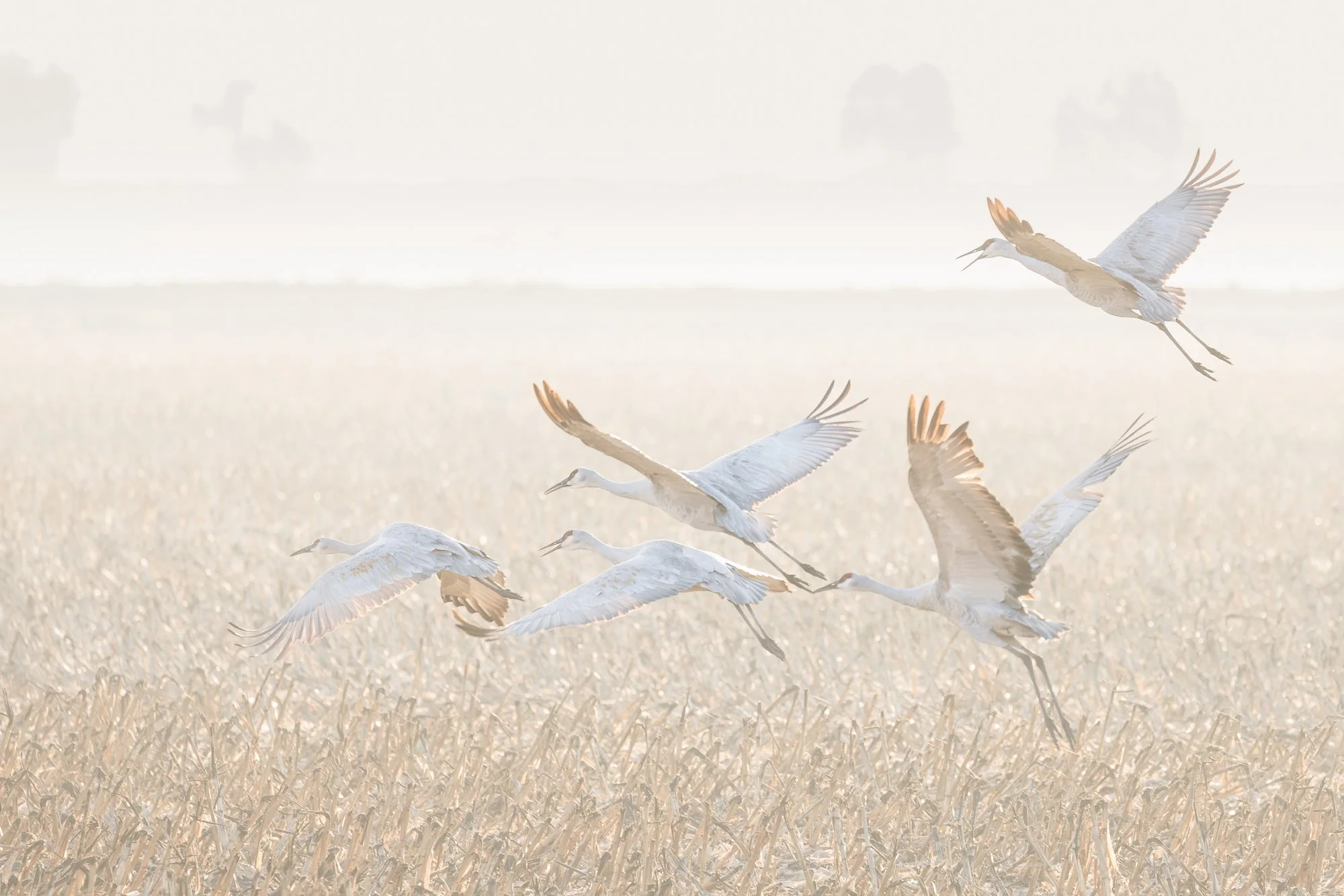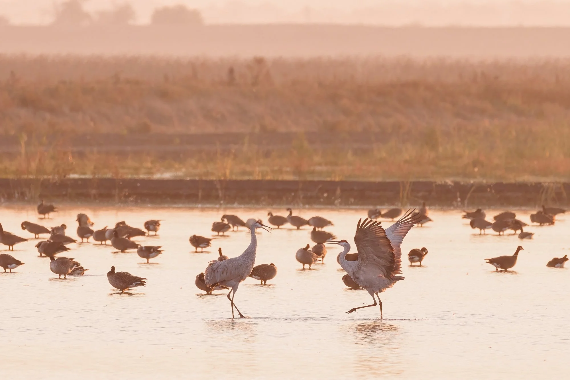 As the cranes flew out and the sun began to rise, other waterfowl flew in. Geese, ducks, and egrets all found their way to the open wetlands.