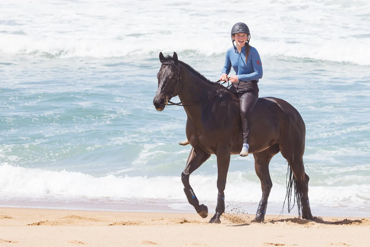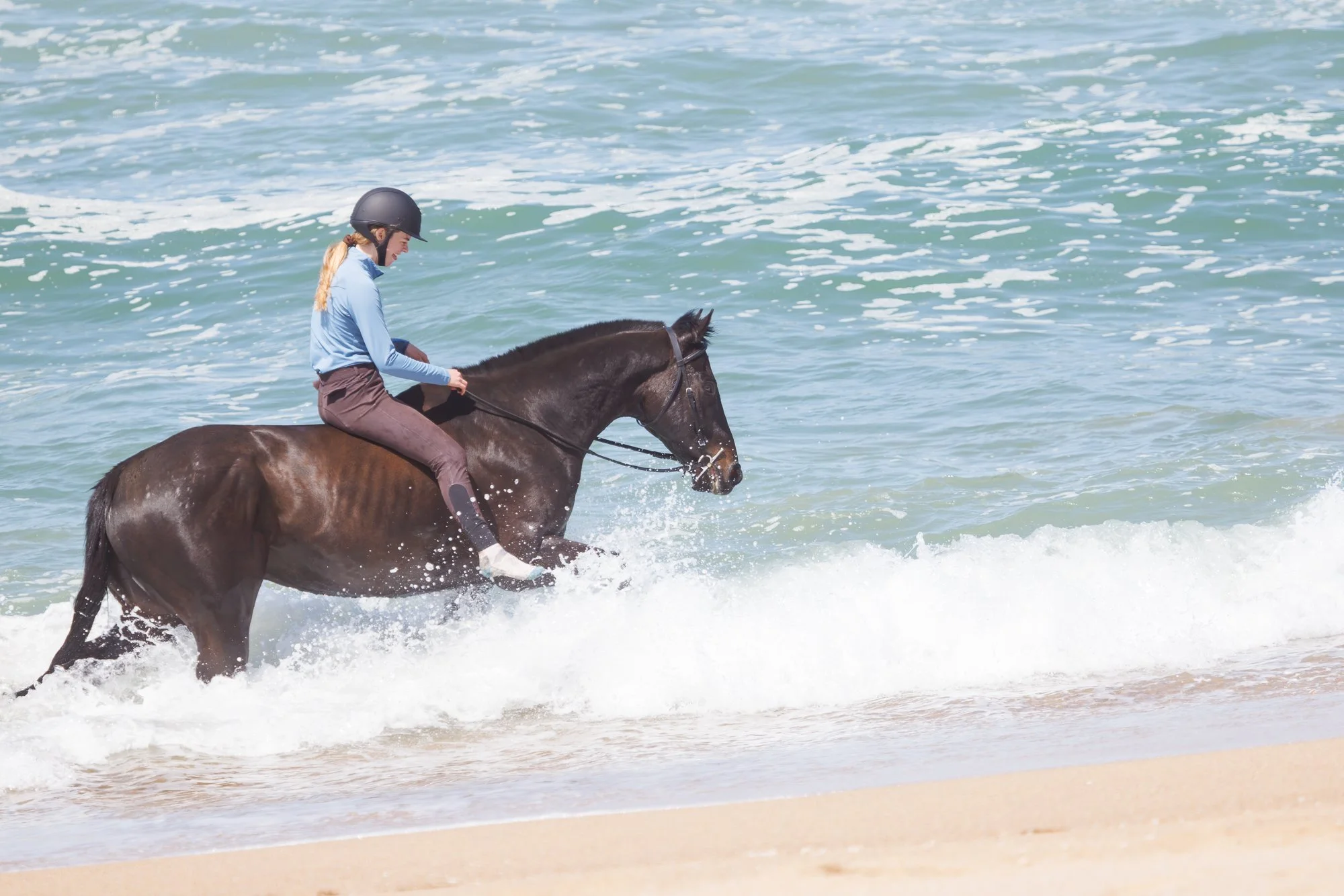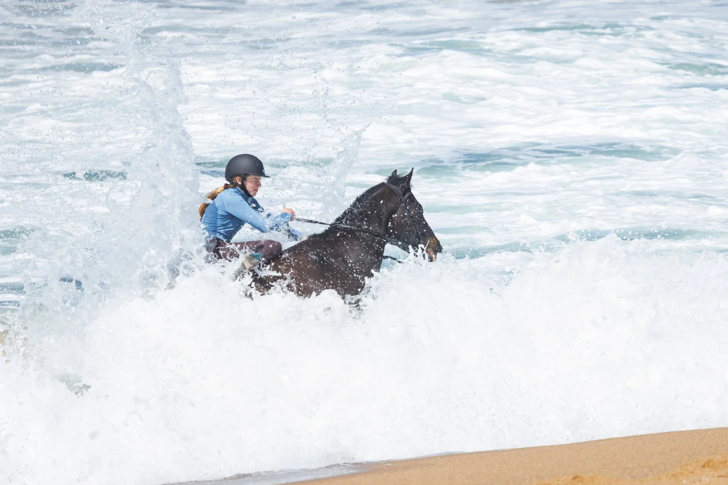 This was a first time visit for one of the horses, and he was not intimidated at all. I’d never have guessed that this was his first time experiencing the crashing waves. He went right in while the waves only got larger.